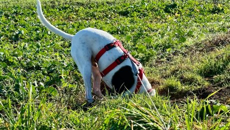 Unser Hof ist nicht nur ein Tummelplatz für Maulwürfe, die alles mit rustikalen Erdhügeln dekorieren, nein, auch für die entgegengesetzte Richtung gibt‘s viele Liebhaber. Einige unserer Hunde zieht es nach Australien, also graben sie sich Tunnel. Nur wir Spaßverderber arbeiten dann mit Herrn Maulwurf zusammen und schließen die Löcher mit seiner fleißig vorbereiteten Erde. Doch